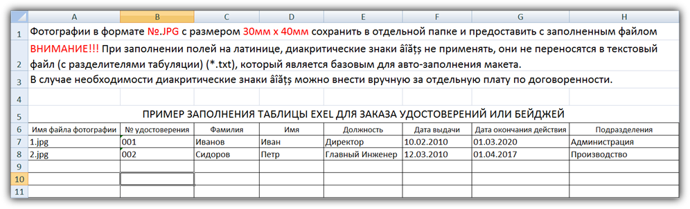 ФОРМА ПРЕДОСТАВЛЕНИЯ ДАННЫХ ДЛЯ ЗАКАЗА ПЛАСТИКОВЫХ БЕЙДЖЕЙ И УДОСТОВЕРЕНИЙ