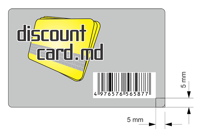 При разработке макета нужно указать место для размещения штрих-кода в виде белого прямоугольника, если фон карты светлый, то можно маркировать карту не используя белую подложку. Штрих-код должен быть размером не менее 34х14 мм и не ближе 2,5 - 5 мм от края карты.